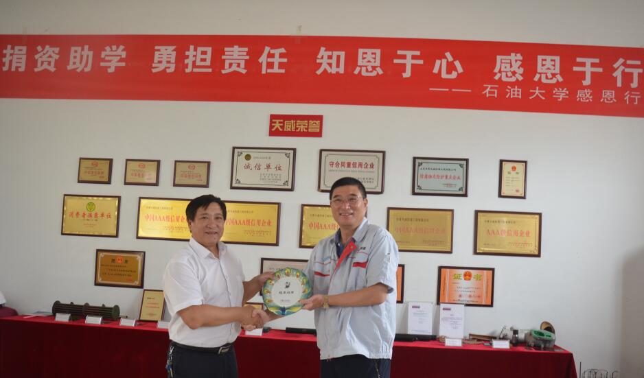 2019年7月17日,中國(guó)石油大學(xué)(華東)材料科學(xué)與工程學(xué)院黨委書記門小剛、黨委副書記孫啟龍等一行七人到天威防腐工程有限公司感恩行,天威防腐董事長(zhǎng)單國(guó)軍、總經(jīng)理李偉等人接待并參與活動(dòng)。